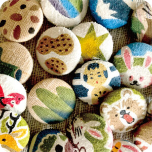 そんなわけで、まずは遠州木綿にステンシルをしてくるみボタンを作り始めました。