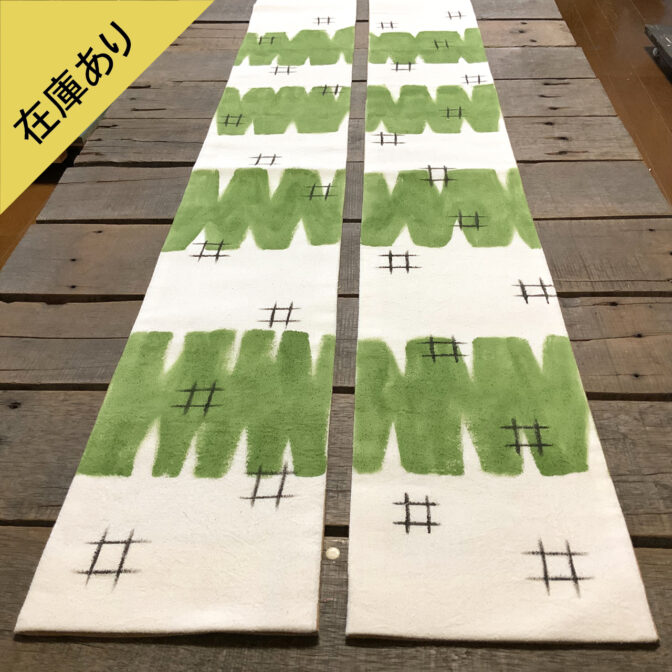 発表当初は中央付近のステンシルのみでしたが現在は両端に約1mづつ手描きの柄が入る仕様になっております。裏の生地も遠州木綿を仕様しております。この商品は在庫しておりますので、注文後数日以内に発送いたします。