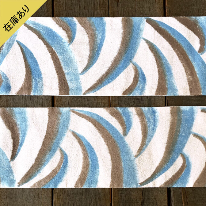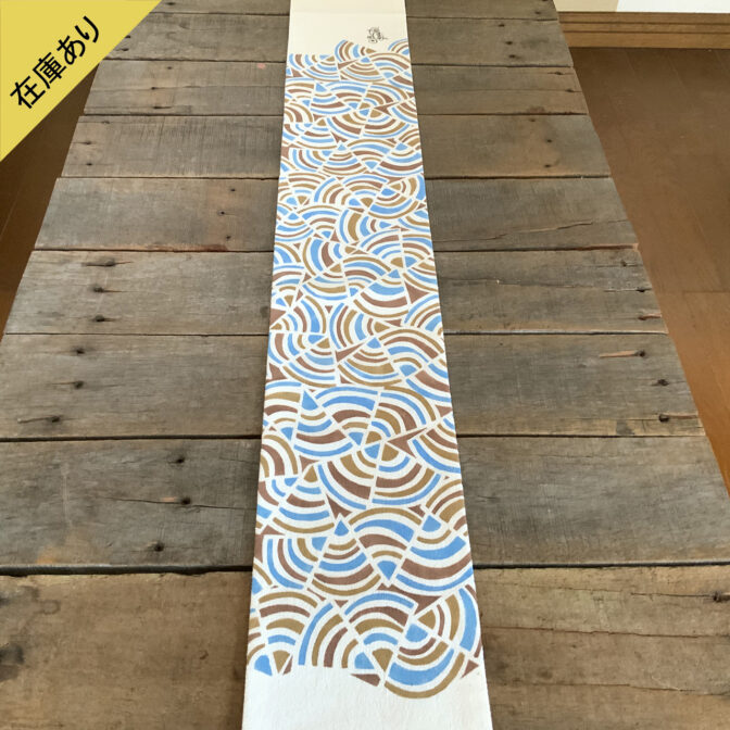 発表当初は中央付近のステンシルのみでしたが現在は両端に約1mづつ手描きの柄が入る仕様になっております。裏の生地も遠州木綿を仕様しております。この商品は在庫しておりますので、注文後数日以内に発送いたします。